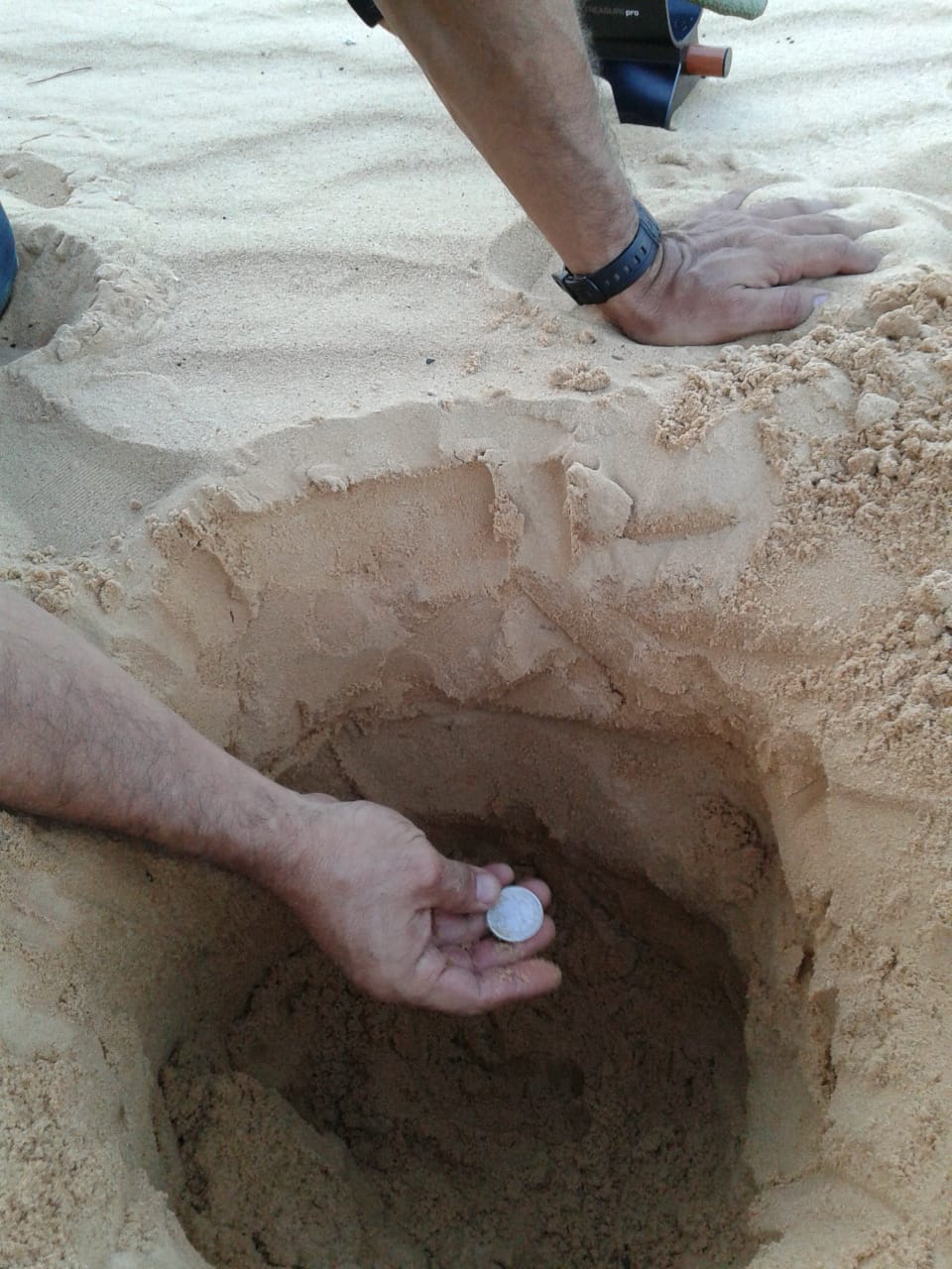 Moneda  encontrada a 30 centímetros de profundidad con un detector de metales