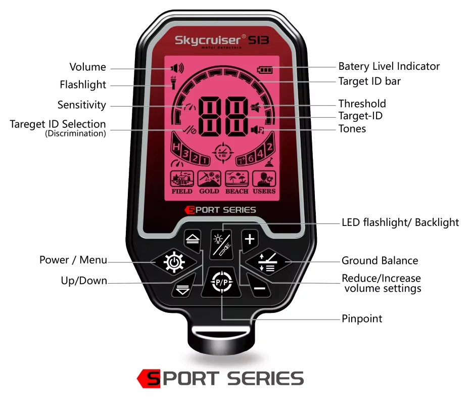 Detector de Metales Profesional de Alta Potencia El detector de metales S13 ofrece un rendimiento excepcional en las condiciones más duras de su categoría.